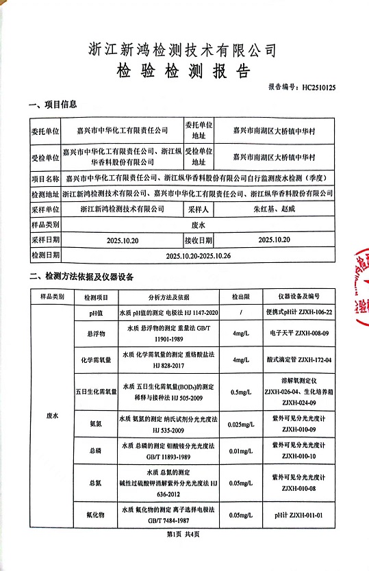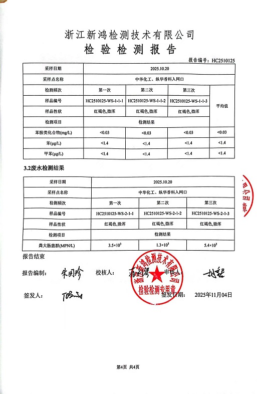 報告名稱:中華化工4季度廢水檢測報告