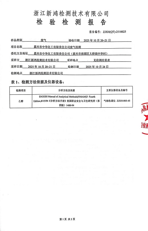 - 中華化工3季度廢氣檢測(cè)報(bào)告
