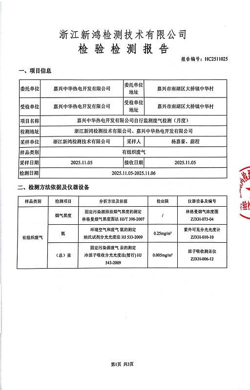 - 中華熱電11月廢氣檢測(cè)報(bào)告